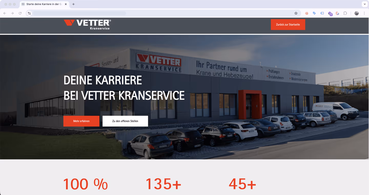 Wir haben in fast allen Branchen Karriereseiten erstellt und Stellen besetzt. Auf unserer Referenzen-Seite finden Sie ausgewählte Projekte. Im Erstgespräch stellen wir Ihnen weitere Beispiele aus Ihrer Branche vor und klären, welche Inhalte für Ihre Zielgruppe am besten funktionieren.
